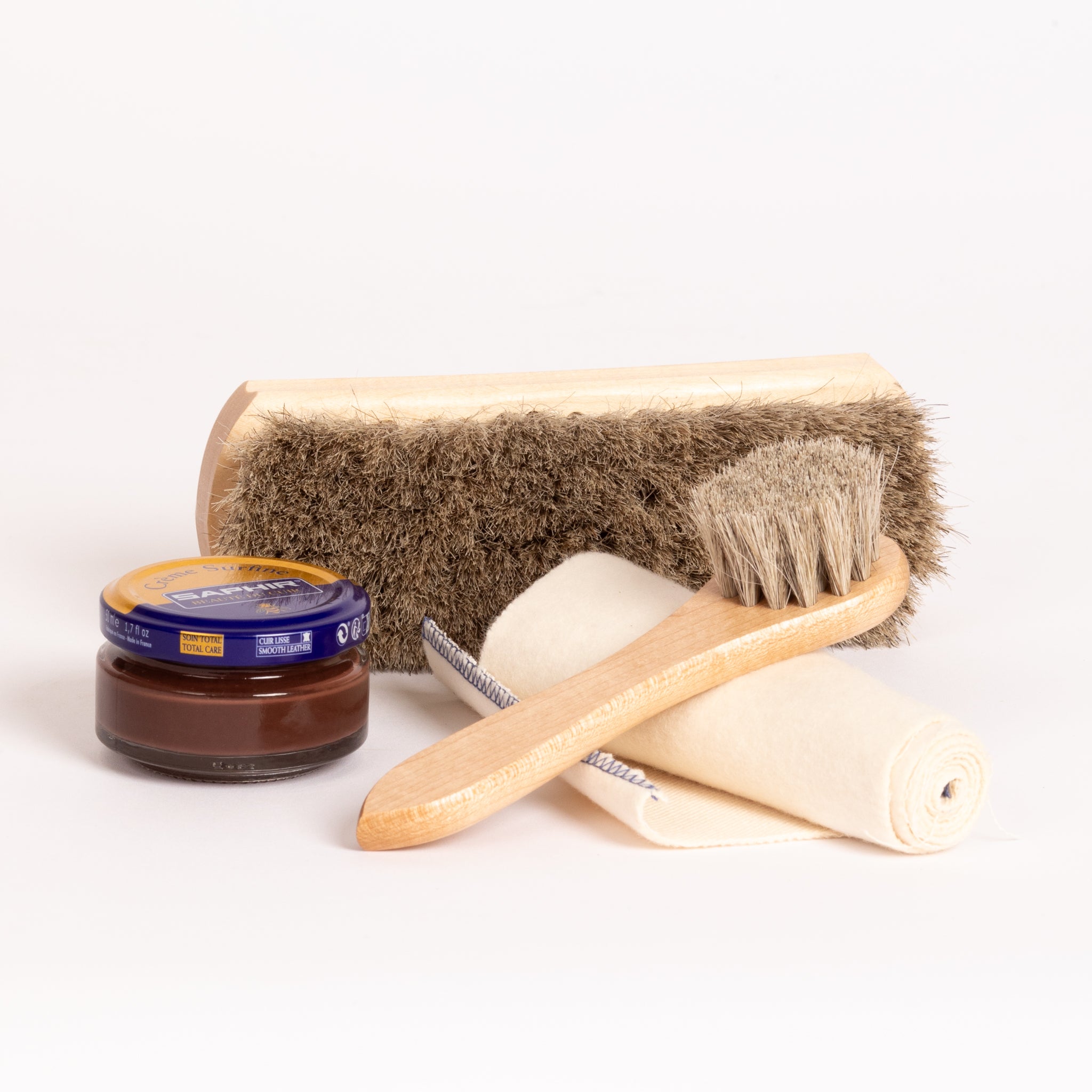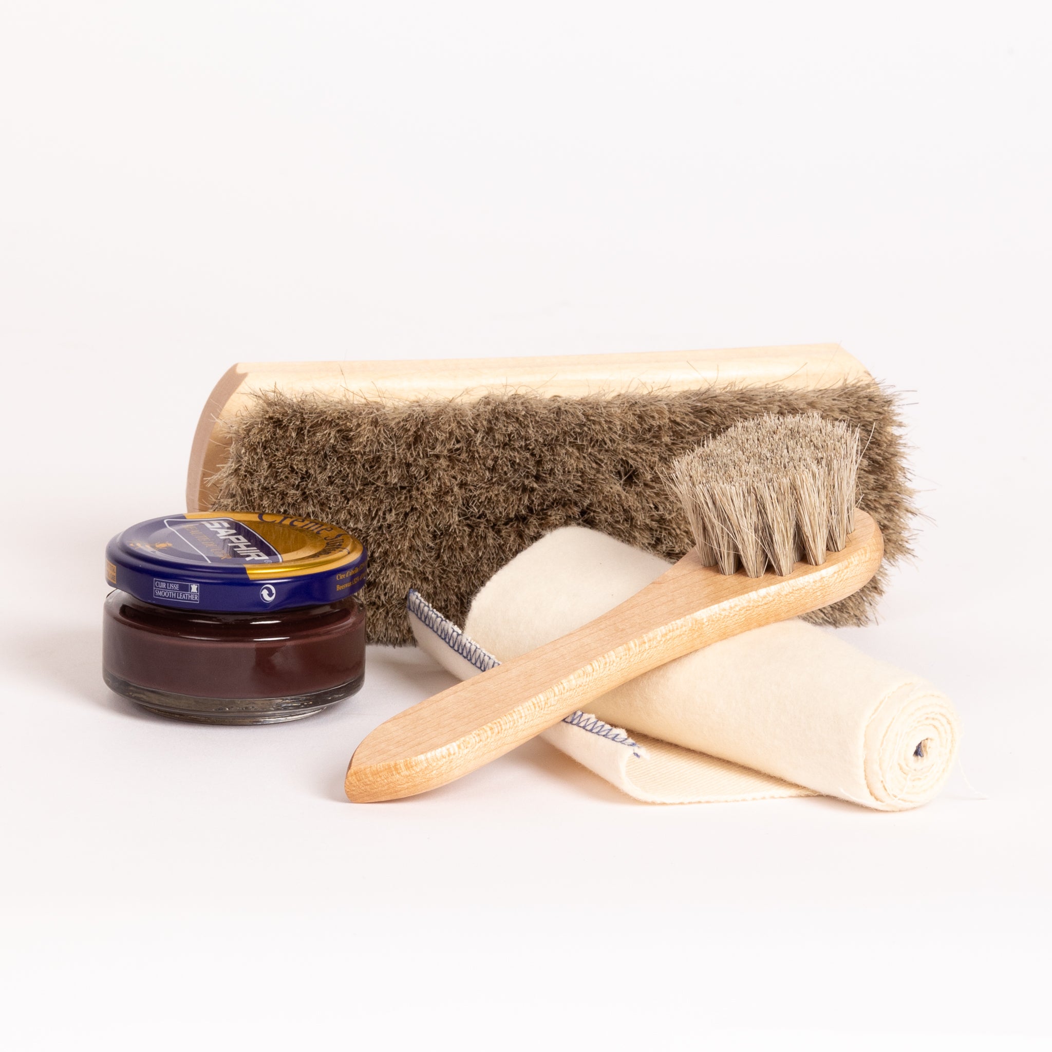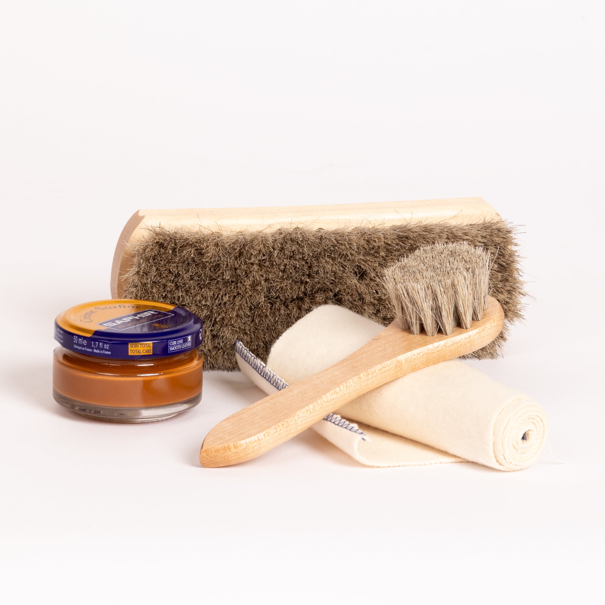 -Saphir leather cream in color matching the color picked. Made in France.